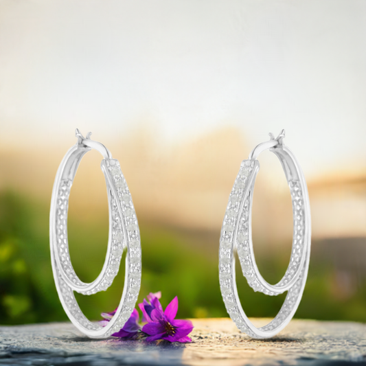 .925 Sterling Silver 1/2 Cttw Miracle-Set Diamond Double Hoop With Latchback
